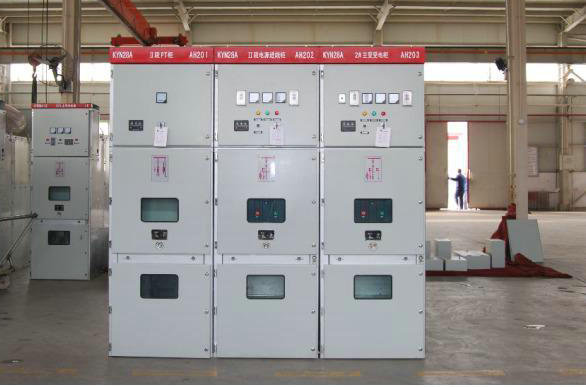 金屬封閉鎧裝式開關(guān)柜,用字母K來表示,主要組成部件(例如:斷路器、互感器、母線等)分別裝在接地的用金屬隔板隔開的隔室中的金屬封閉開關(guān)設(shè)備。如:KYN28A-型高壓開關(guān)柜。