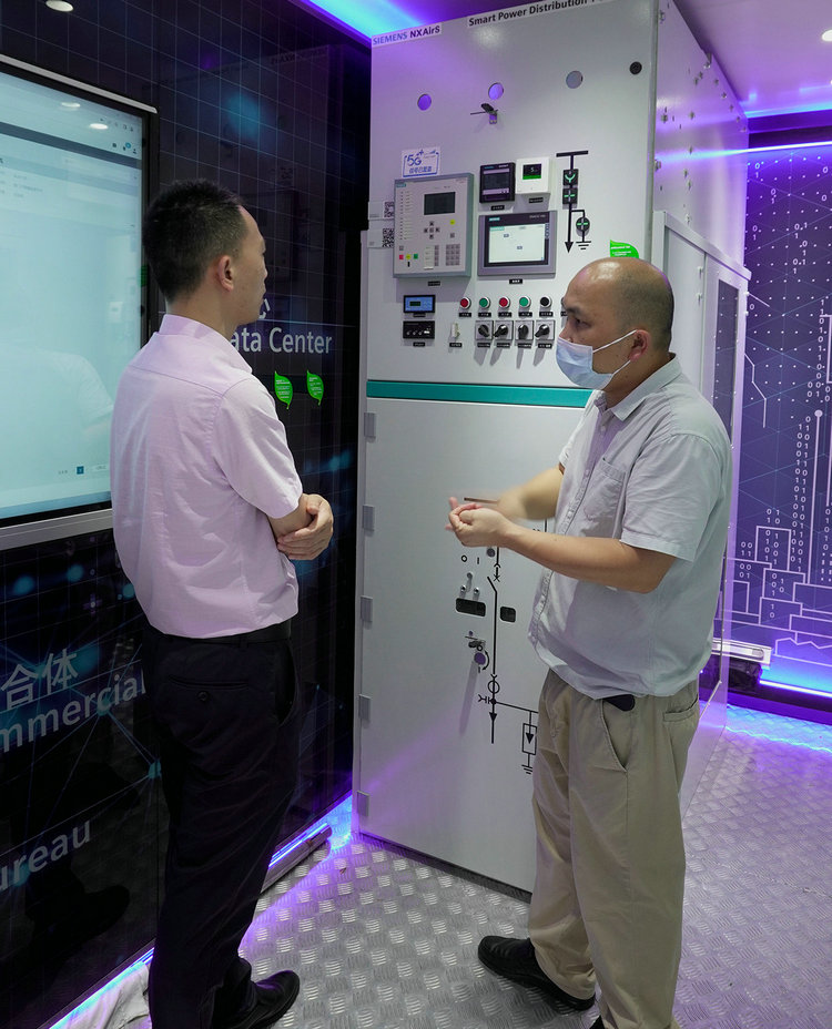 在“零碳先鋒號”展車中,西門子以智能配電、電機(jī)智能控制保護(hù)、智能樓宇、行業(yè)解決方案和數(shù)字化解決方案五大板塊生動展示了相應(yīng)的綠色低碳技術(shù)產(chǎn)品和行業(yè)解決方案。