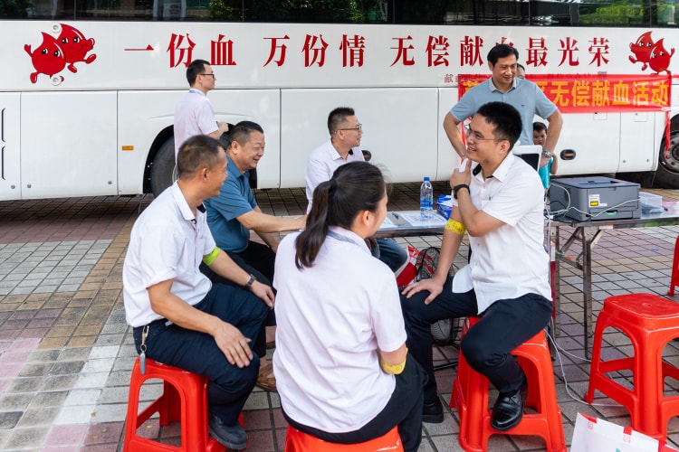 上午9點,盡管天氣炎熱,但祥科的伙伴們依然早早地來到了獻血點。